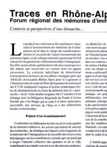 À l’époque, la biennale est initiée par l’association ARALIS, bailleur social de la région Rhône-Alpes, et porte le nom de « forum régional des mémoires d’immigrés ».