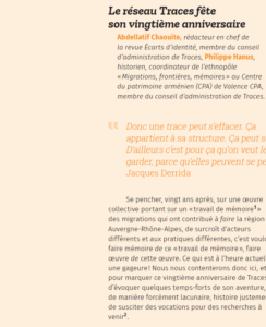 Vingt ans se sont écoulés depuis l’organisation de la première biennale Traces, en 2000.