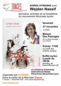 Expression artistique des personnes migrantes Rencontre Lyon Maison des Passages Ven 27 nov 19h30 7 € / 10 € Soirée syrienne avec Wejdan Nassif, écrivaine…
