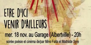 Film et lecture poétique Albertville Le Garage de la librairie des Bauges Mer 18 nov 20h 3 € Etre d’ici, venir d’ailleurs… pourquoi des hommes…