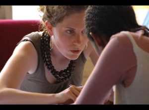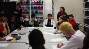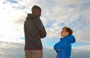 Deux jeunes filles rencontrent quatre mineurs isolés.