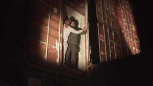 Dans un container, entre les caisses de marchandises, deux hommes racontent leur exil. Leurs récits et leurs passages des frontières infinis se rejoignent dans un rêve commun : atteindre l’Angleterre. (GREC – Courts métrages réalisés dans le cadre de la Résidence FRONTIERES avec le Musée de l’histoire de l’immigration)