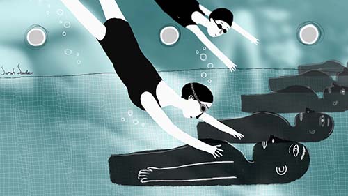 Vida est une jeune nageuse sauveteuse iranienne. Favorite dans son équipe, elle est décidée à se battre pour participer à une compétition internationale en Australie. Mais, avec l’arrivée de Sareh, aussi rapide et talentueuse qu’elle, elle va être confrontée à une situation inattendue. - Tente 113, Idomèni (2020, Suisse, 18 min.) de Henri Marbacher