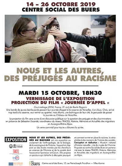 Mardi 15 octobre, à 18h30 : Vernissage de l’exposition et projection du film « Journée d’appel » de Basile Doganis (2014, France, 21 mn), suivis d’une discussion publique sur la question des préjugés et des discriminations. Un verre convivial pour tou.te.s clôturera la soirée.
