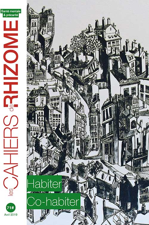 « Le titre de ce Rhizome est tautologique. Habiter, c’est co-habiter. Autrement dit, la dimension subjective d’habiter intègre un cadre social, souvent de manière problématique pour les plus vulnérables et troublés d’entre nous. Nous n’habitons pas seuls. C’est cette tension et les points de convergence entre cette double perspective (subjective et sociale) qui intéresse dans ces Cahiers ». On y lira comment l’habiter ne se réduit pas à l’habitation mais engage une part de l’être, que l’on peut habiter la rue même ou un habitat collectif comme un foyer s’il abrite une solidarité entre les habitants, ou des lieux ethniquement investis. Mais qu’inversement, des lieux dits d’accueil (telles les familles d’accueil pour les migrants) peuvent constituer une épreuve, voire un « impossible » de se sentir « chez soi », ou des centres dits d’hébergement se révéler ne pas tenir compte d’un nécessaire accompagnement sanitaire, et bien d’autres modalités et problématiques de l’habiter-cohabiter. Et que d’abord « il nous faut avant tout habiter le monde » même : savoir le partager en tout lieu.
