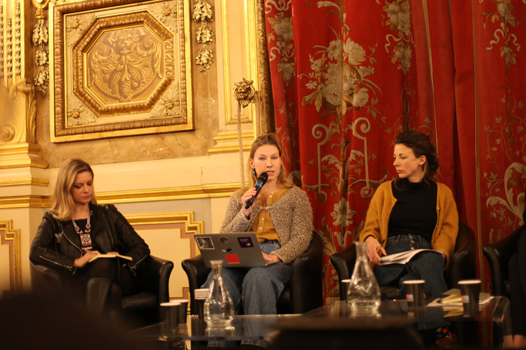 En présence de la photographe, Mélania Avanzato et de Lena Versanne, de l’Association Lyon-Ukraine